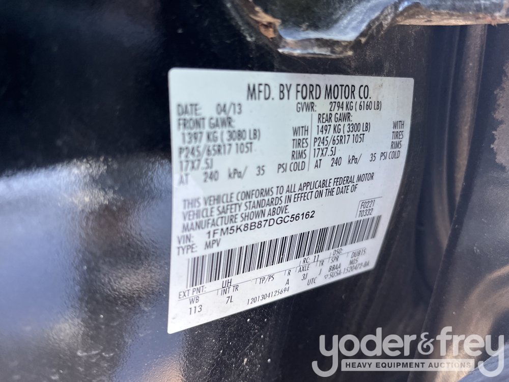 2013 Ford Explorer 4WD (6 Cylinders 8 3.5L FI DOHC 213 CID), Third Row Seats, Back Up Camera (Meter Reading: 125281 Miles) - 1FM5K8B87DGC56162