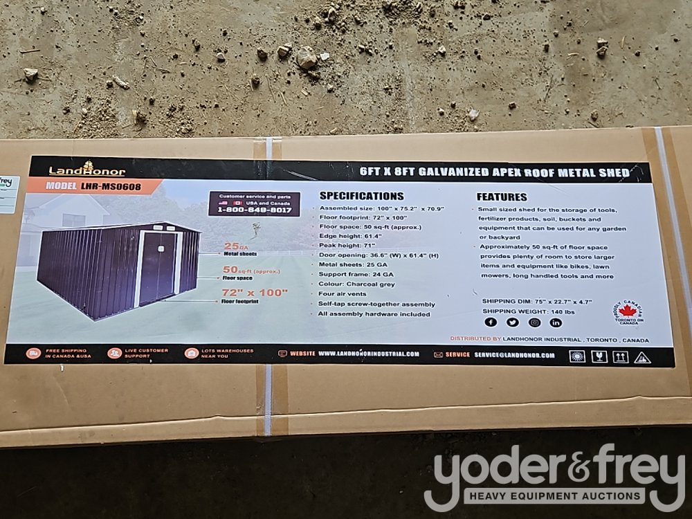 Unused 2026 Landhonor LHR-MS0608 6' x 8' Galvanized Apex Roof Metal Shed - 540022259