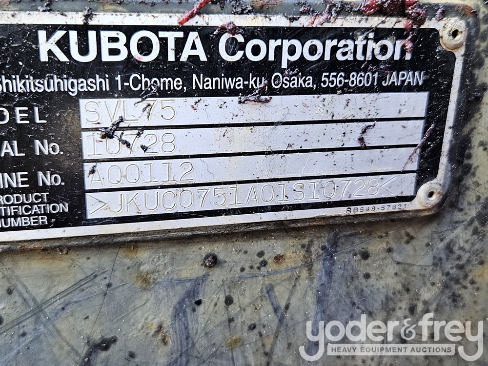 Kubota SVL75-2 Tracked Skidsteer Loader, Cab, A/C, Rubber Tracks, Joystick Controls, Aux Hydraulics, Rear View Camera, Bucket - 10728