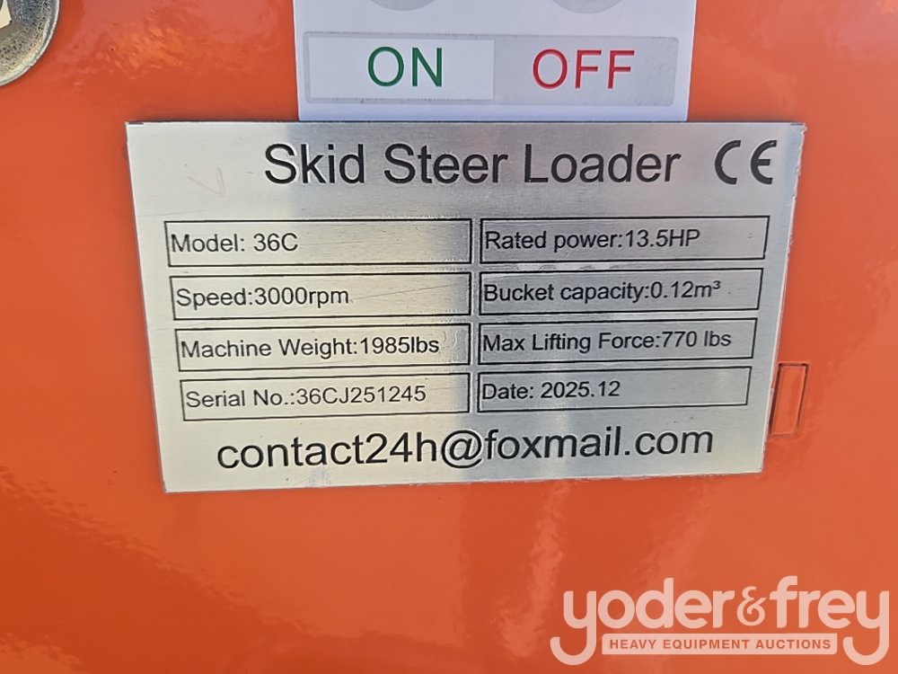 Unused MMS MS36C Electric Start Open Operator Station, 40" Bucket to suit Skidsteer Loader - 36CJ251245