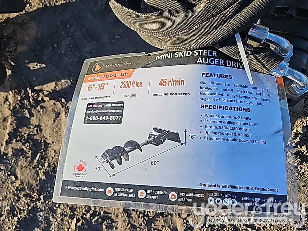 Unused Wolverine MAD-12-12D Auger Drive & Bit to suit Mini Skidsteer Loader - ZW02884
