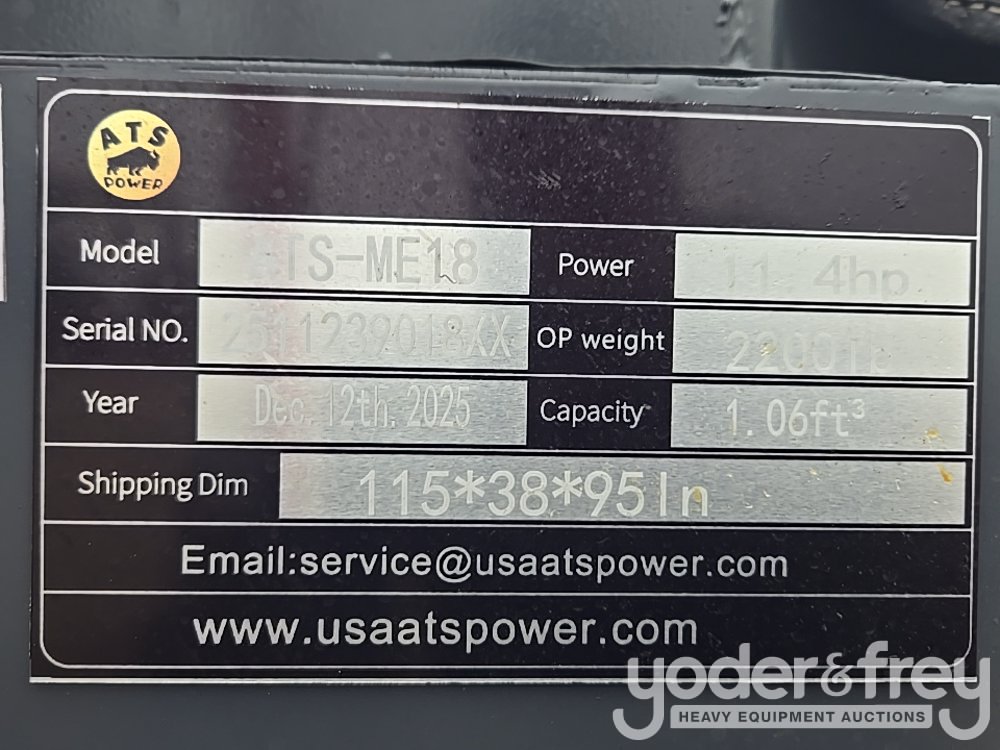 Unused ATSpower ATS-ME18 Mini Excavator, OROPS, Rubber Tracks, Swing Boom, Bucket - 2511239018XX