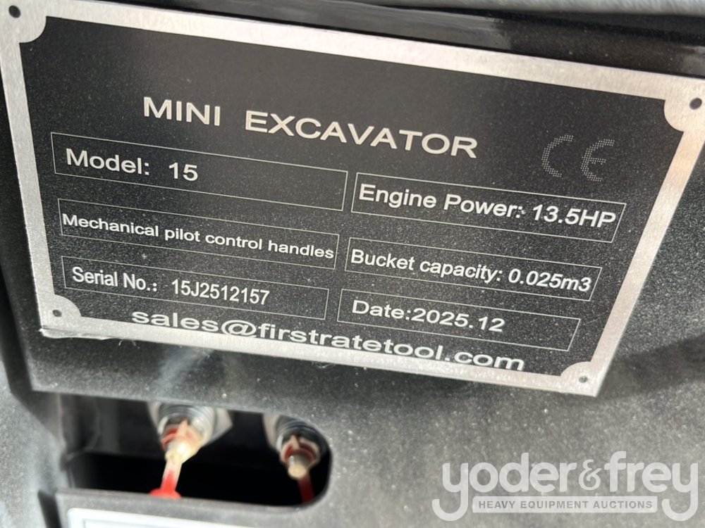 Unused 2026 Miva VA15 Mini Excavator, Rubber Track, 16’ Digging Bucket, Hydraulic Plumbing, Bulldozer Blade, Manual Thumb - 15J2512157
