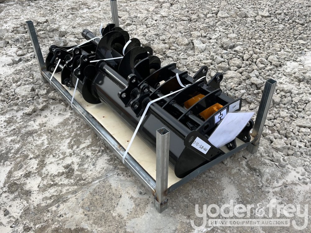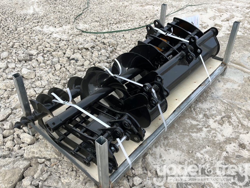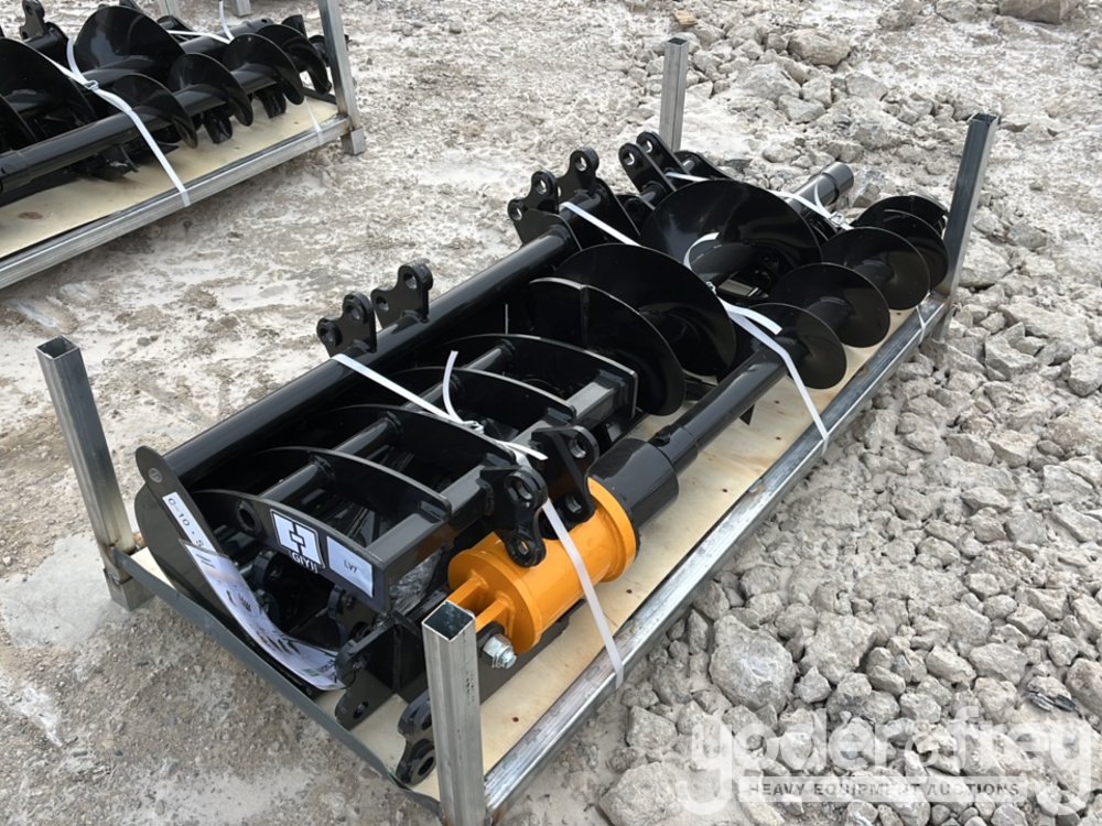 Unused 2026 GIYI Excavator Attachments QTY (8), Rake, Ripper, Grabber, 12” Auger, 16” Auger, 8” Narrow Bucket; 24” Bucket, 32” Bucket - C-10SJB-444