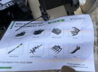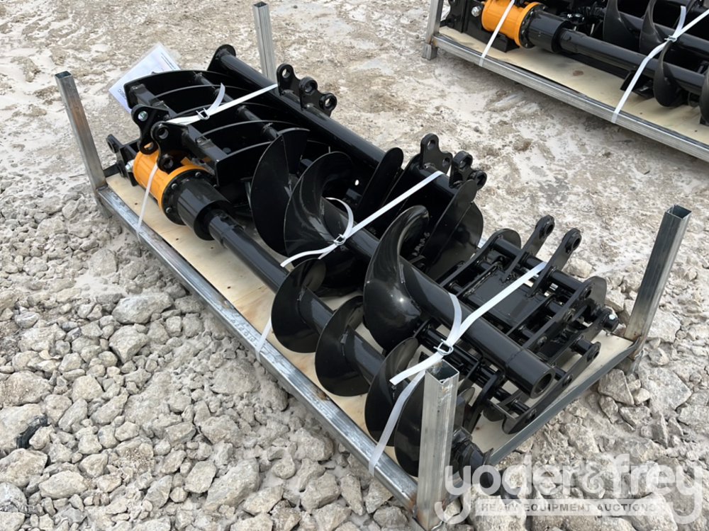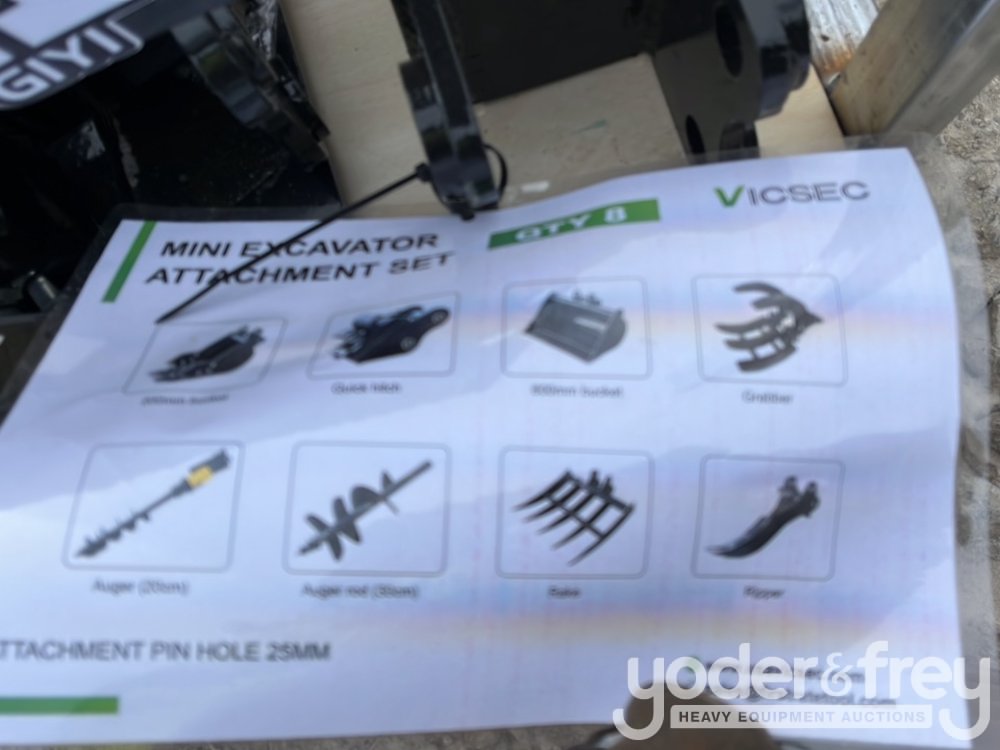 Unused 2026 GIYI Excavator Attachments QTY (8), Rake, Ripper, Grabber, 12” Auger, 16” Auger, 8” Narrow Bucket; 24” Bucket, 32” Bucket