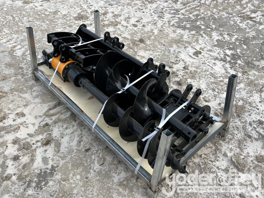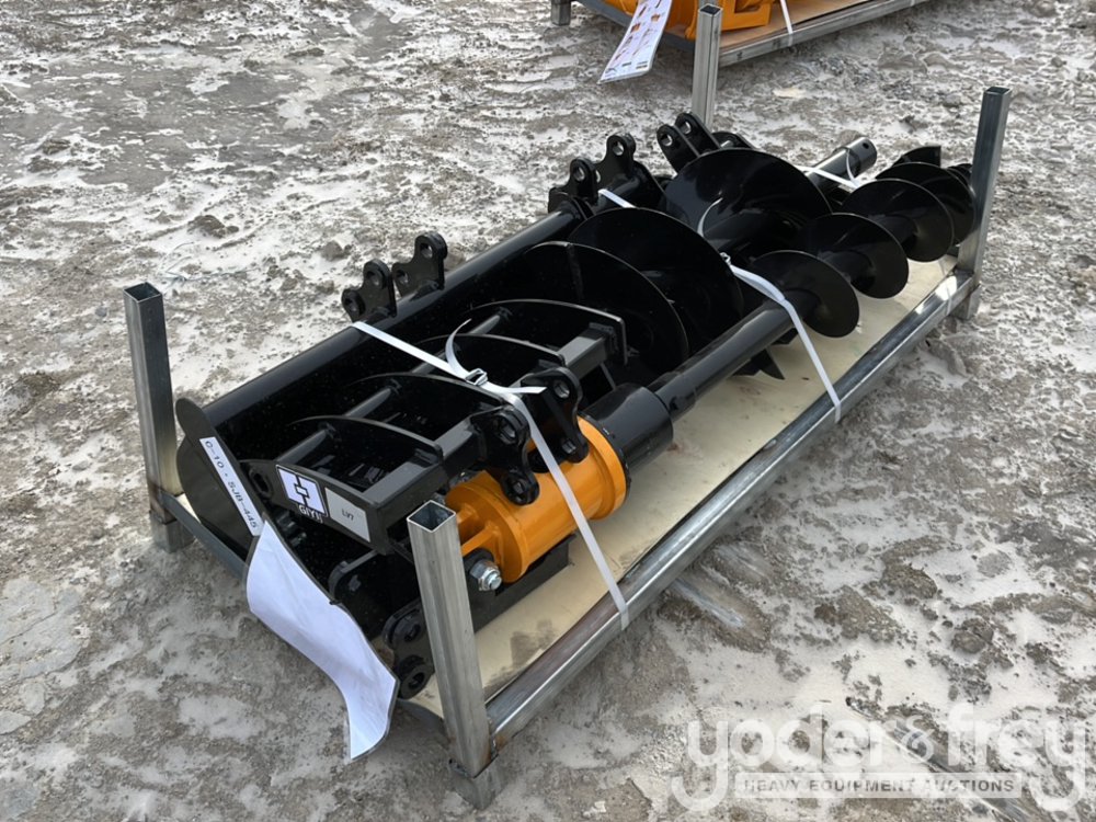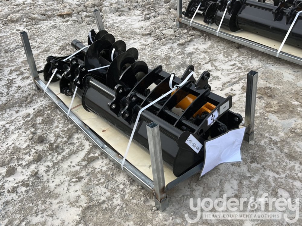 Unused 2026 GIYI Excavator Attachments QTY (8), Rake, Ripper, Grabber, 12” Auger, 16” Auger, 8” Narrow Bucket; 24” Bucket, 32” Bucket - C-10SJB-445