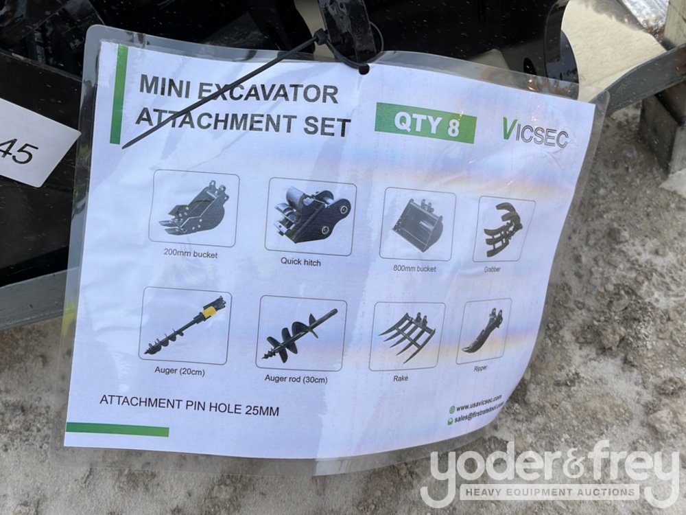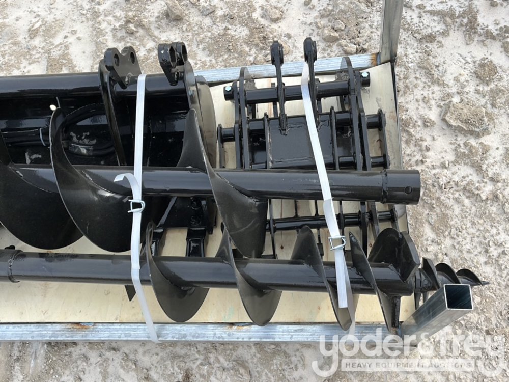 Unused 2026 GIYI Excavator Attachments QTY (8), Rake, Ripper, Grabber, 12” Auger, 16” Auger, 8” Narrow Bucket; 24” Bucket, 32” Bucket