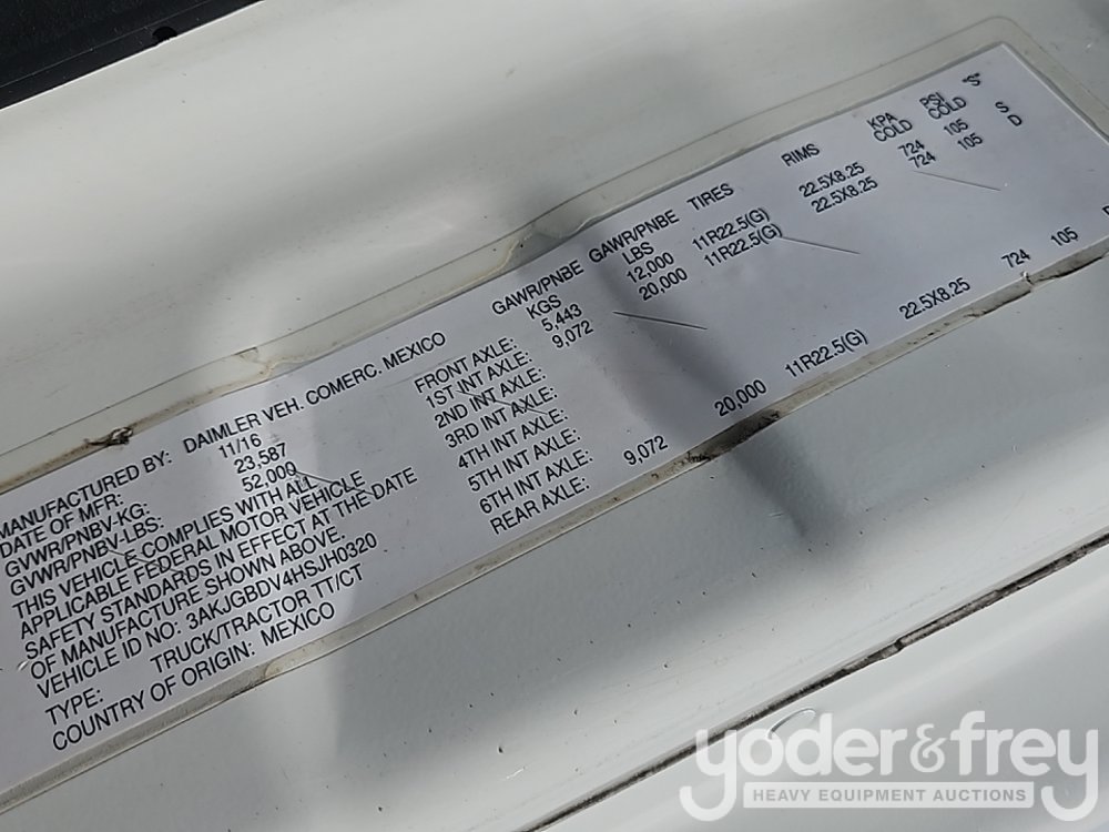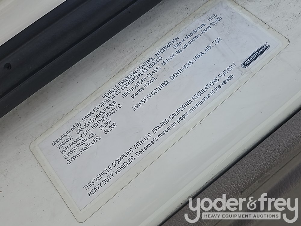 2017 Freightliner Cascadia 113 6x4 Truck Tractor, Day Cab, Detroit DD13, DT 12 Auto (Meter Reading: 594836 Miles) - 3AKJGBDV4HSJH0320-194379