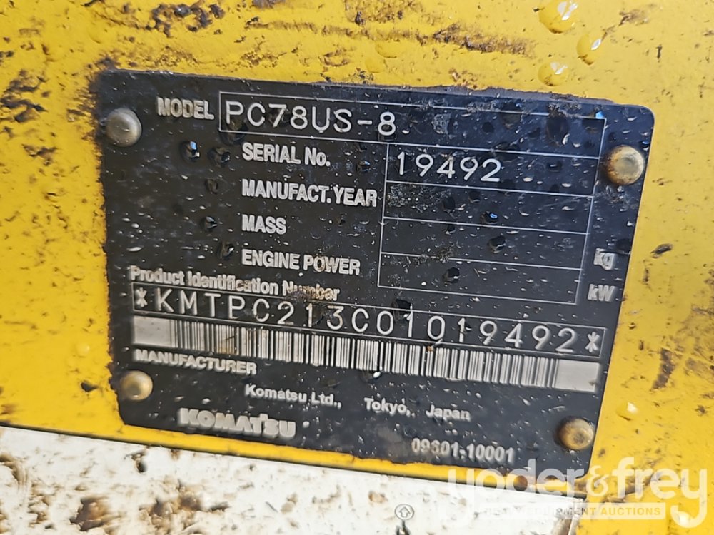2015 Komatsu PC78US-8 Excavator, A/C, 17" Pads, Blade, Aux Hydraulics, 25" Bucket, Hydraulic Thumb, Rear View Camera - 19492