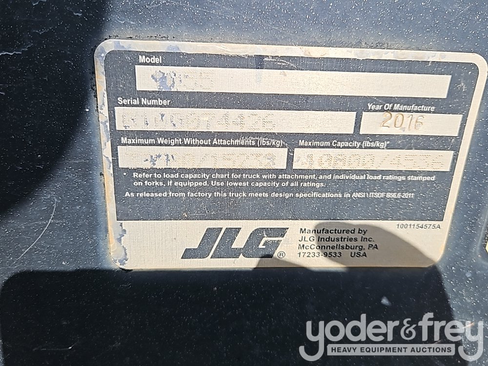 2016 JLG 1055 Telehandler, OROPS, 10,000lbs Max Lift Capacity, 55' Max Lift Height, Stabilizers, Joystick Controls, Frame Levelling, Forks - 0160074426