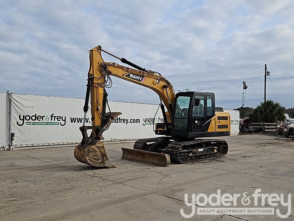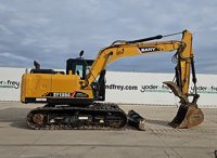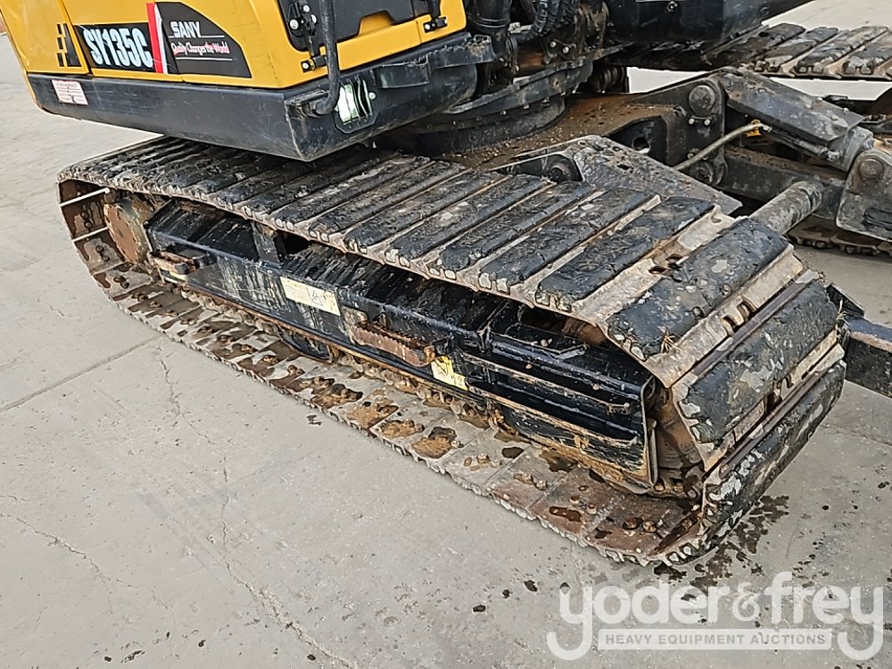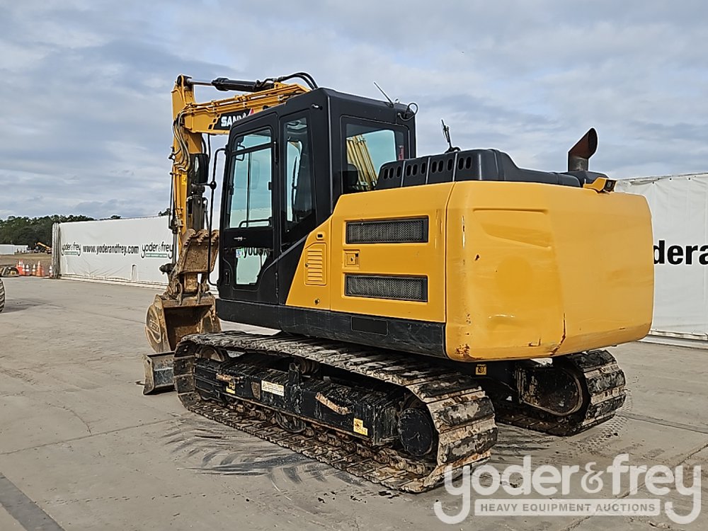 2023 Sany SY135C Excavator, A/C, 24" Rubber Block Pads, Blade, CV, Aux Hydraulics, 35" Bucket, Hydraulic Thumb, Rear View Camera (Meter Reading: 1364 Hours) - SY013FCC20268