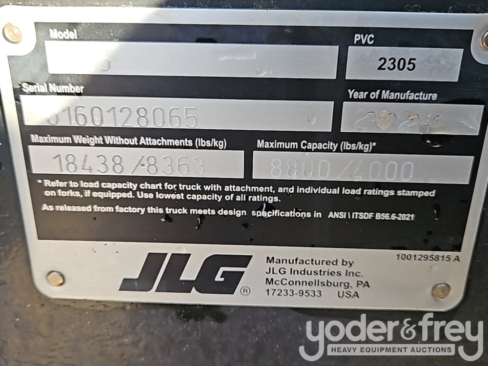 2024 JLG AG925 Telehandler, Cab, A/C, 8,800lbs Max Lift Capacity, 25' Max Lift Height, Forks (Meter Reading: 2320 Hours) - 0160128065