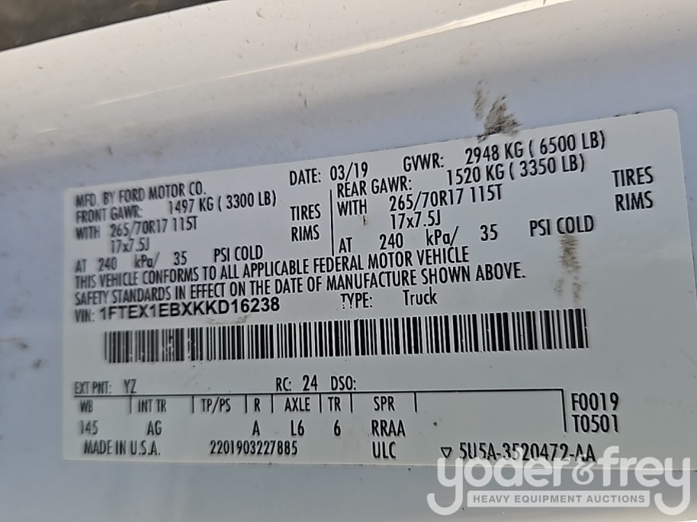 2019 Ford F150 4x4 Extended Cab Pickup Truck, 3.3L V6 DOHC 24V Engine, 6 Speed Automatic Transmission (Meter Reading: 180229 Miles) - 1FTEX1EBXKKD16238