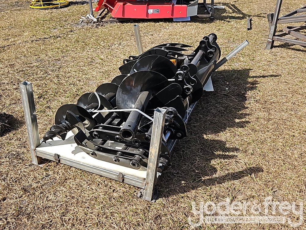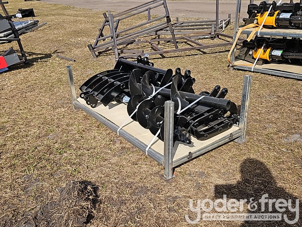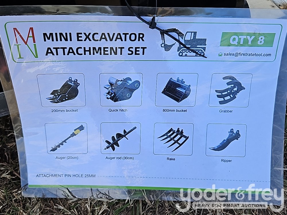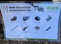 Unused GIYI QTY (8) Excavator Attachment Set, Rake, Ripper, Grabber, 12" Auger, 16" Auger, 8" Narrow Bucket; 24" Bucket, 32" Bucket - C-10SJB-417