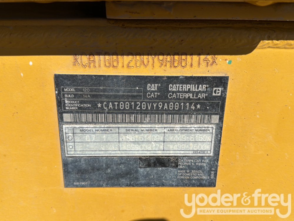 2019 CAT 120 Motor Grader, Cab, A/C, Rear View Camera, 14' Moldboard, Scarifier (Meter Reading: 5467 Hours) - CAT00120VY9A00114