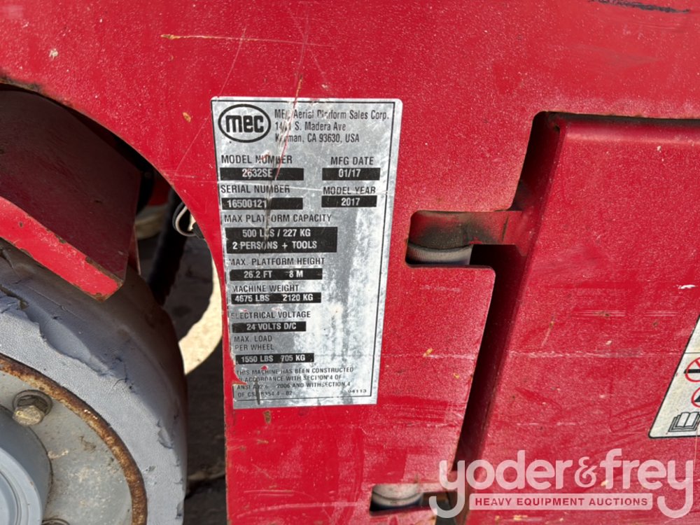 2017 MEC 2632SE 26' Electric Scissor Lift, 500lb Capacity - 16500121