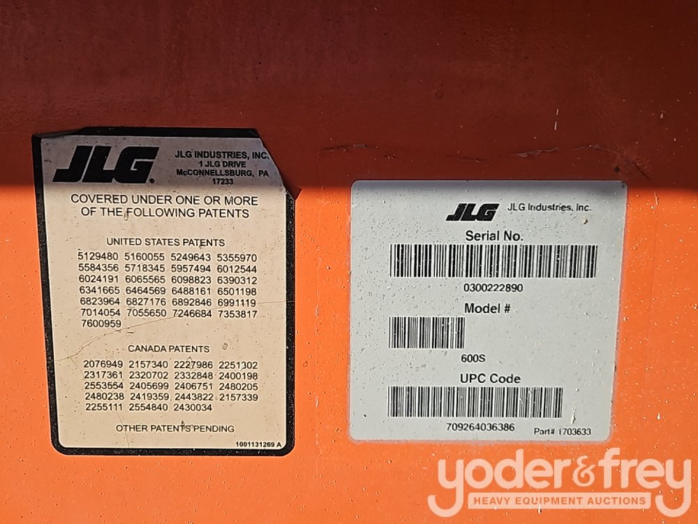 2016 JLG 600S 60' Telescopic Boom Lift, 47' Horizontal Reach, DSL, 4WD, 1000lb Max Capacity, Power to Platform, Proportional Controls, Oscillating Axle - 0300222890