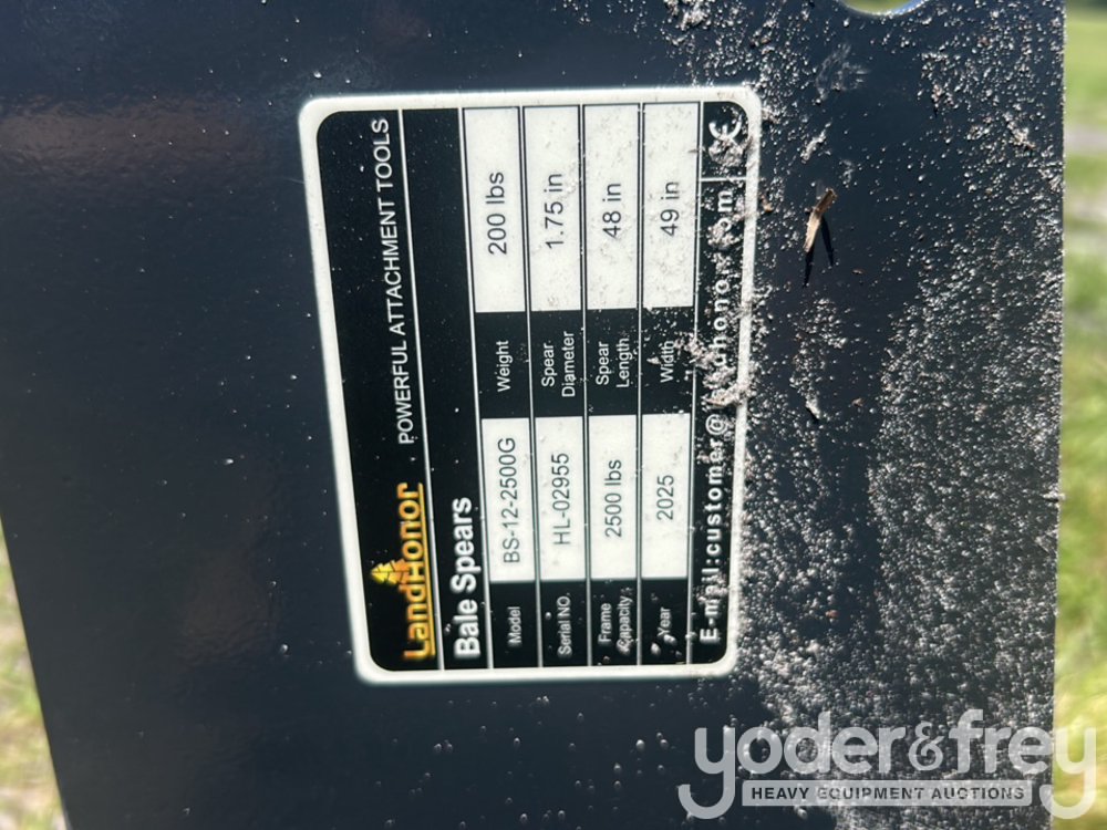 Unused 2026 Landhonor BS-12-2500G Bale Spear to suit Skidsteer - HL-02955