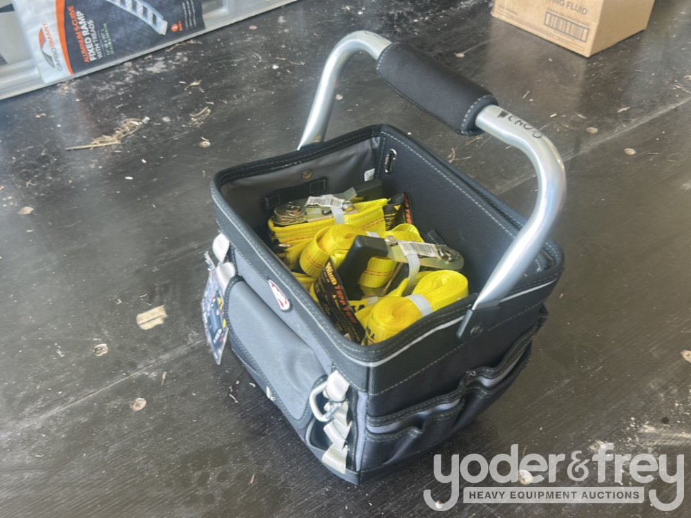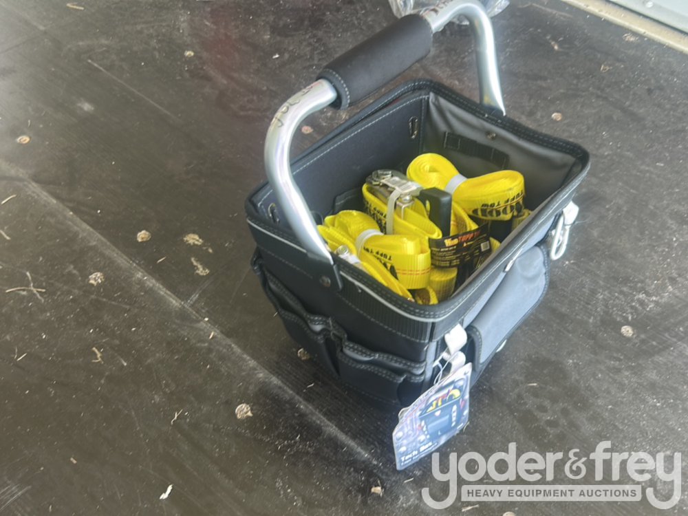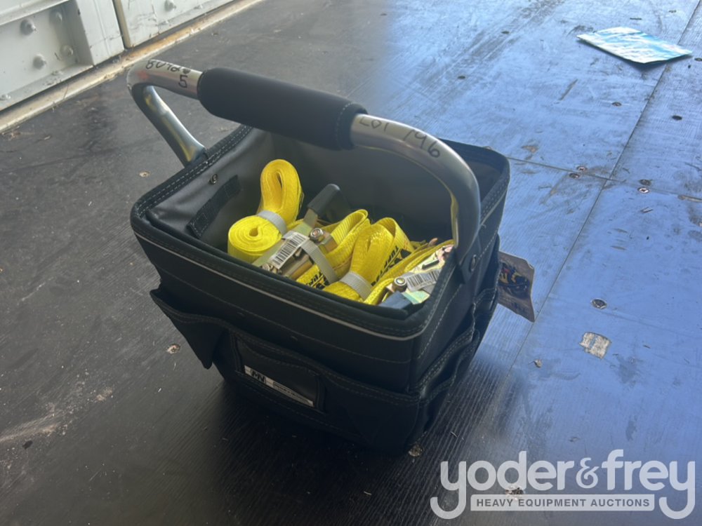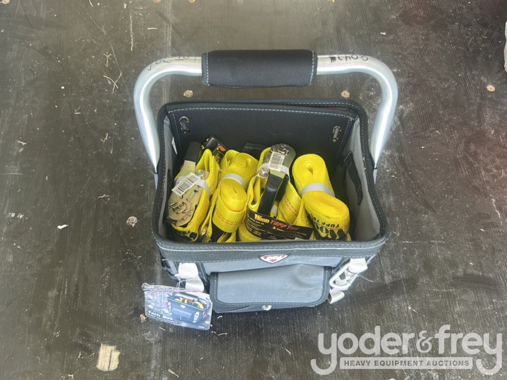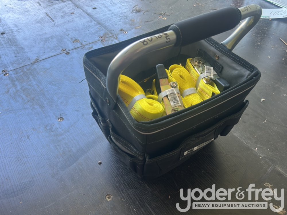 Unused 1 1/2" X 15' Tuff Tow Rachet Straps (8 Pieces), Comes with 12" Professional Tool Bag - 600080425